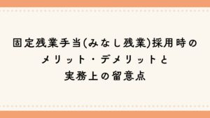 固定残業手当(みなし残業)採用時のメリット・デメリットと実務上の留意点